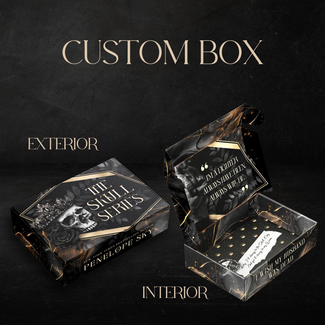 Dark, dangerous, and utterly irresistible...introducing the Skull Series Special Editions. Three hardcovers with foil: one in gold, one in rose gold, and one in black. These aren’t just books—they’re visual masterpieces. Featuring skull imagery, favorite passages, and edge designs that align across the set to reveal a single, savage Skull image when aligned. All three books also contain Penelope Sky's signature for that added personal touch.
